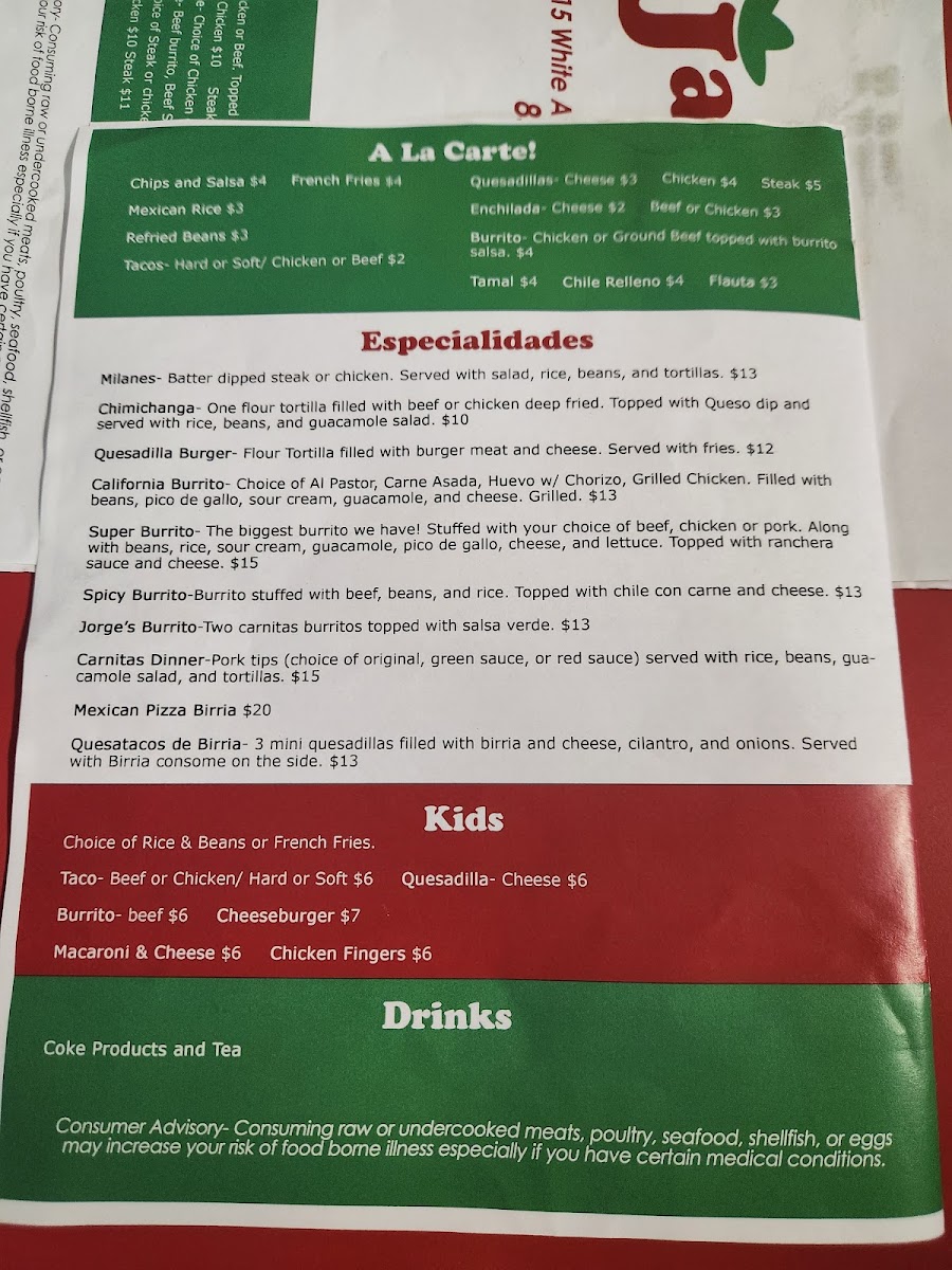 For those seeking a satisfying meal, the Especialidades section shines with dishes like the California Burrito ($13) and the must-try Quesadilla Burger ($12). Patrons rave about the robust flavors, with the salsa having 'perfect zing' and the carnitas dinner earning high praise. Whether you’re a local or just passing through, Javier's Too promises amazing food delivered with friendly service that will keep you coming back.